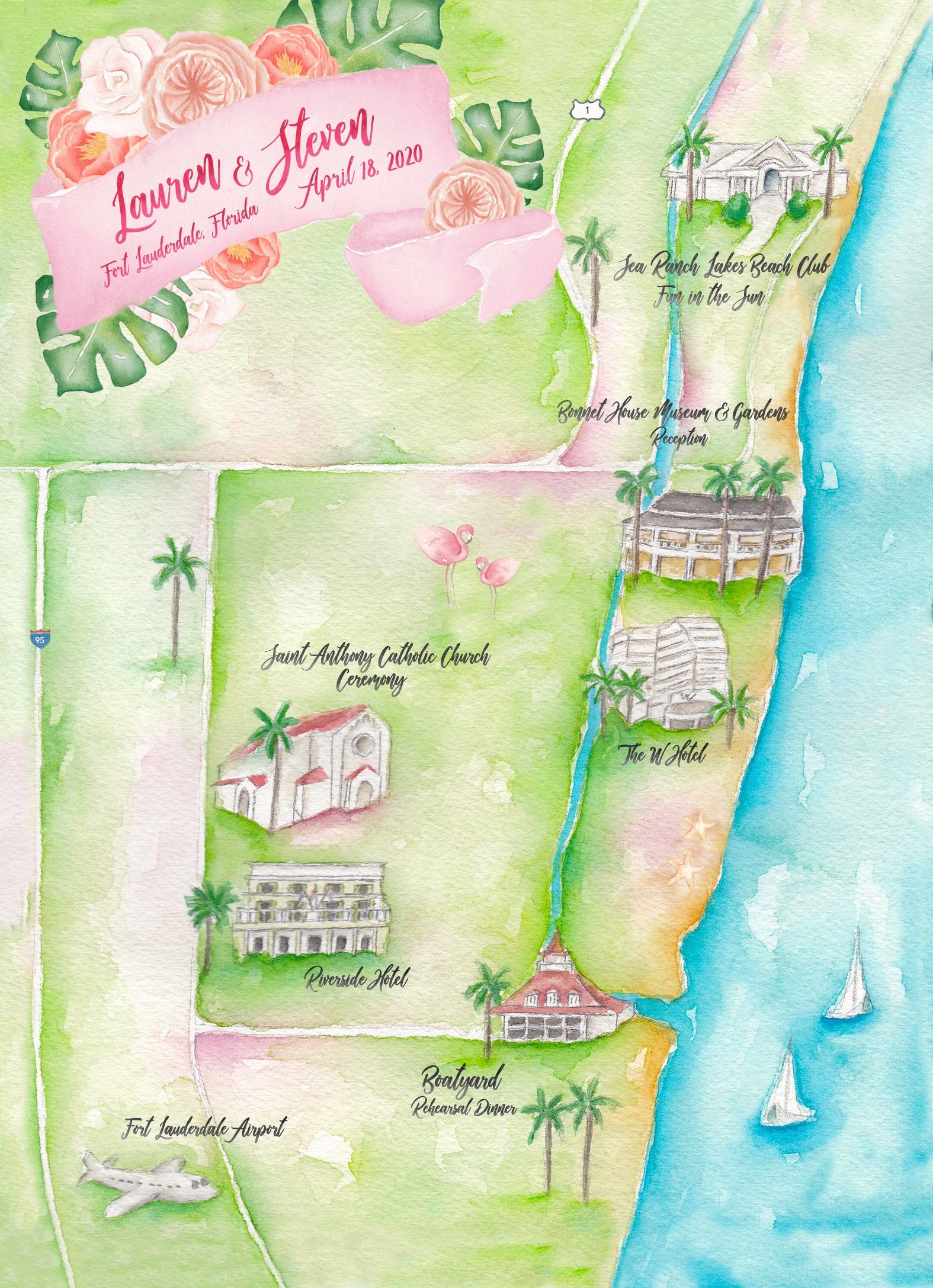 Custom Wedding Map Fort Lauderdale Wedding Map Watercolor Etsy Uk