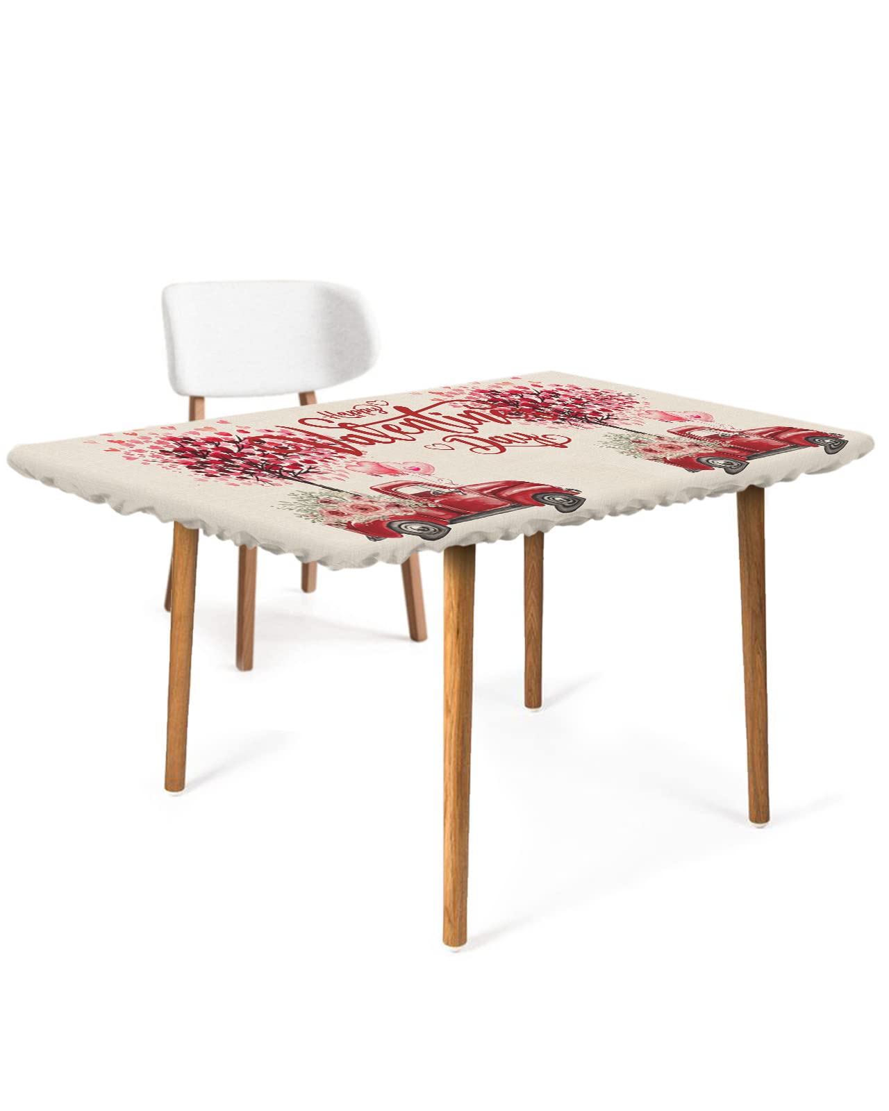 Amazon Com Happy Valentine S Day Elastic Fitted Vinyl Tablecloth For 24 X36 Rectangle Tables Truck Red Love Tree Waterproof Outdoor Table Cover For Party Table Cloth For Picnic Patio Dining 露臺 草皮與花園