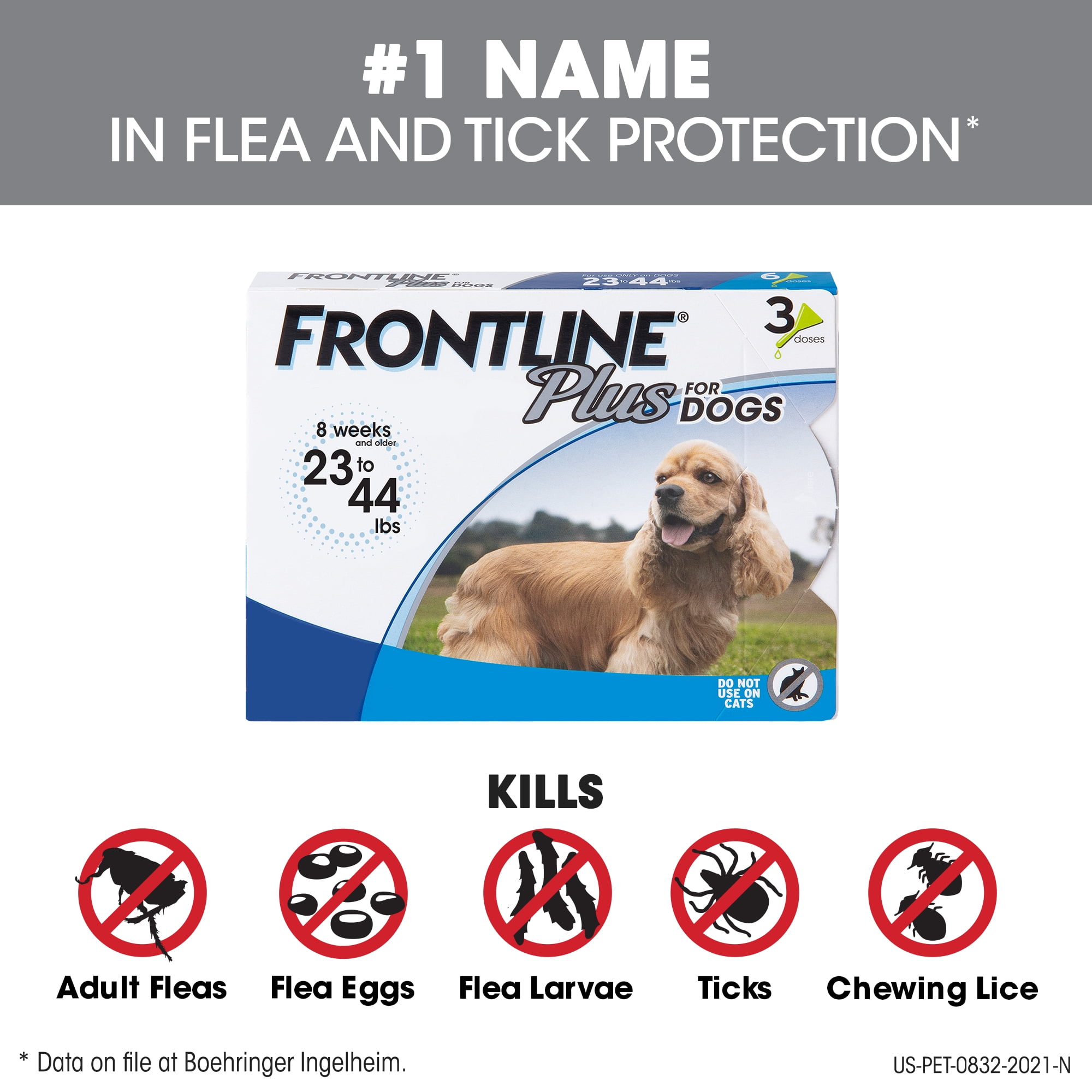 Frontline Plus For Dogs Flea And Tick Treatment Medium Dog 23 44 Lbs Blue Box 3 Ct Walmart Com
